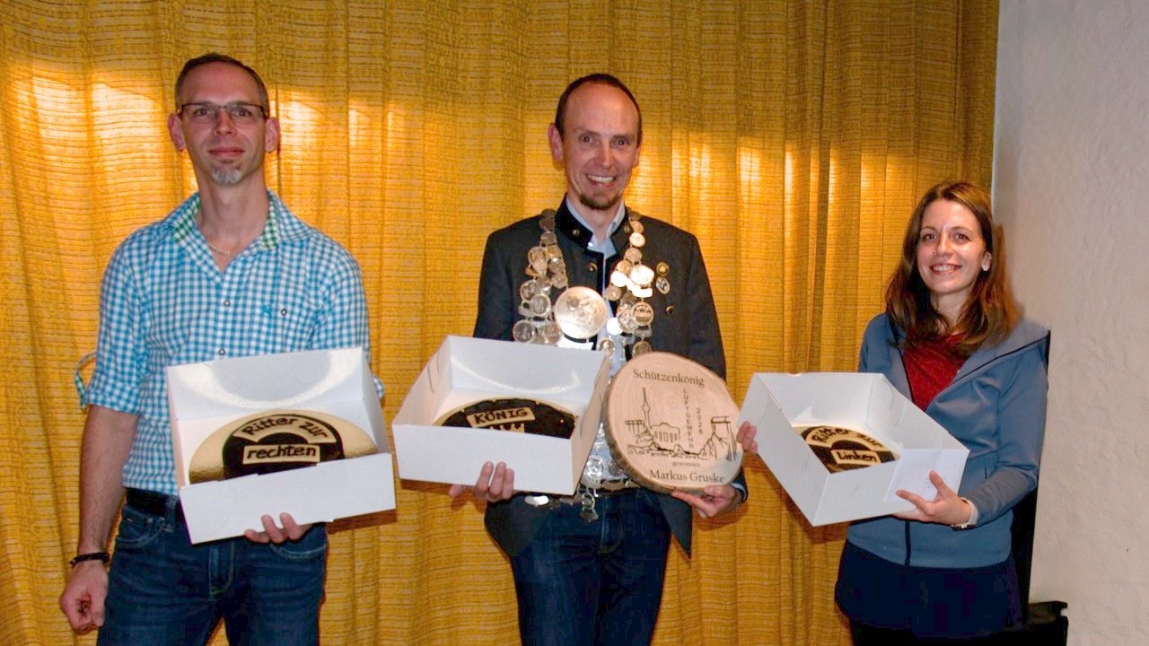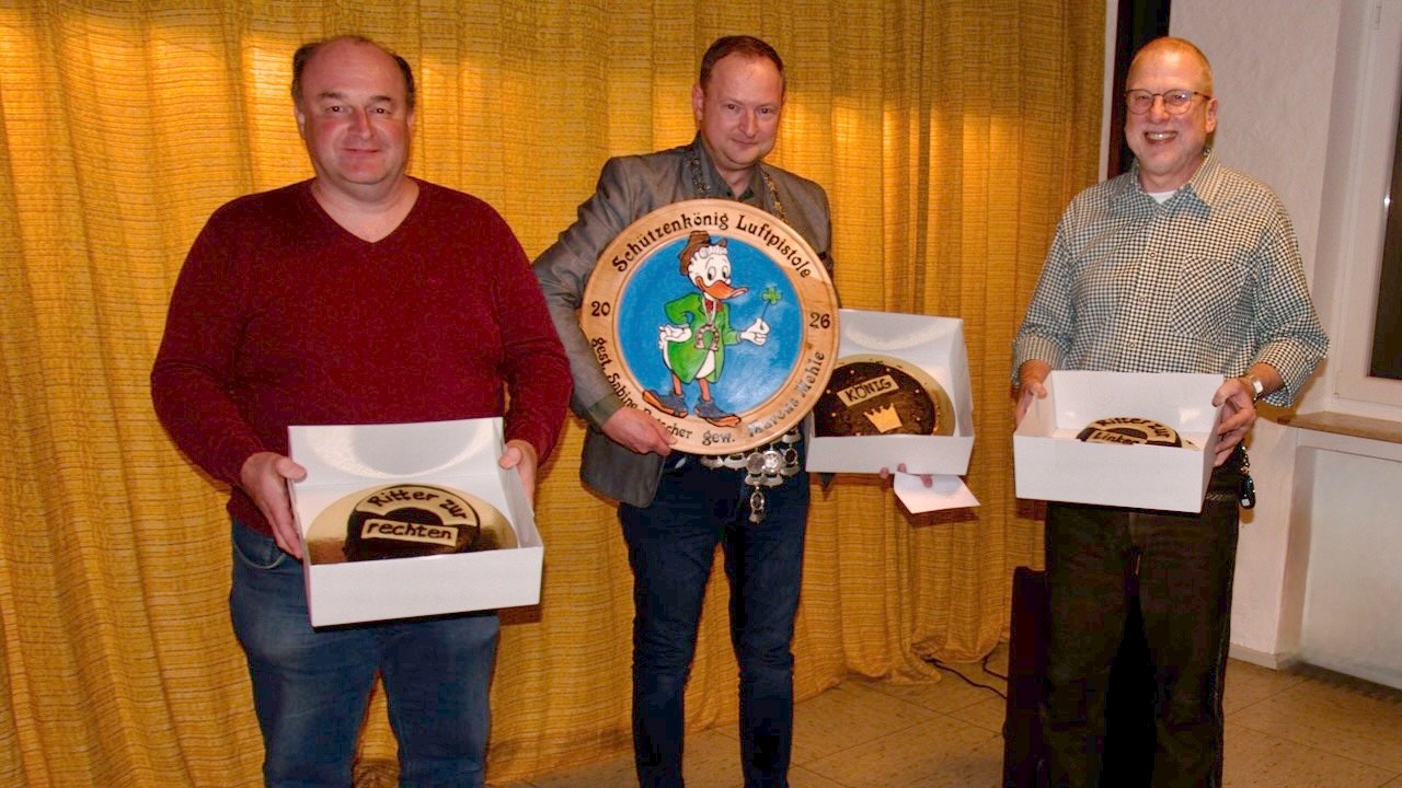 Zur jeweiligen prachtvollen Königskette bekommen die Sieger die Königsscheibe, gestiftet von den scheidenden Königen, und eine leckere Königstorte, gestiftet vom der Bäckerei Gukkenberger, sowie ein Preisgeld. Die Jugenkönigsscheibe wurde wie alle Jahre von unseren Ehrenmitglied Wolfgang Zeiske gespendet.
